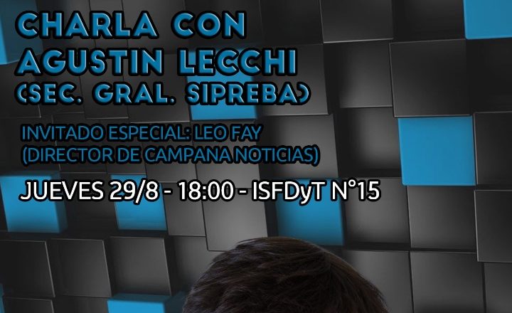 El día jueves 29 de agosto a las 18Hs en el ISFDyT N°15 se realizara una charla con Agustin Lecchi sobre la precarización laboral y problemas de salud mental en los trabajadores de prensa en la era «Milei», contaremos con la participación de Leo Fay, director de Campana Noticias.