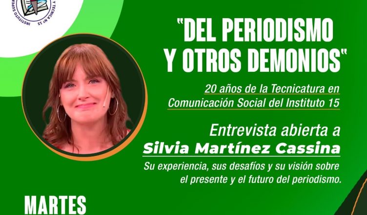 En celebración de los 20 años de la Tecnicatura en Comunicación Social del Instituto Superior de Formación Docente y Técnica N°15 de Campana, se realizara una entrevista abierta con la reconocida periodista Silvia Martínez Cassina el día martes 6 de agosto a las 18:00 Hs en las instalaciones del instituto, ubicadas en Av. Varela y Bvd. Dellepiane.