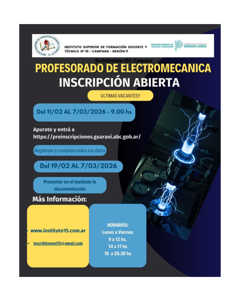 Profesorado en Educación Secundaria Técnico Profesional en Electromecánica