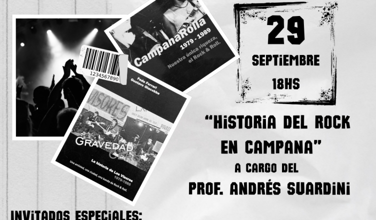 La actividad estará a cargo del Prof. Andrés Suardini y contará con la presencia de invitados especiales: Fede Ferrari y Gustavo Giacobbe, autores de los libros CampanaRolla 1979-1989 y Gravedad Cero, quienes compartirán su experiencia y mirada sobre la escena local del rock.
