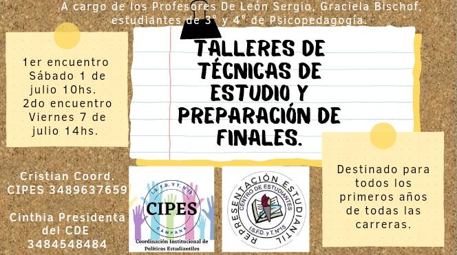 Ahora que llego el momento de las mayores evaluaciones y de los finales la idea de aprender a estudiar es necesaria. Estos talleres son para eso, brindan orientación, realizan actividades abordando distintos formas de estudiar , y como se ajusta a las distintas materias. Venite