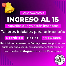 A partir del 9 de Marzo inician los talleres iniciales o introductorios de las carreras, cada inscrtipto recibira un mail con los horarios de las actividarfdes de los talleres horarios.